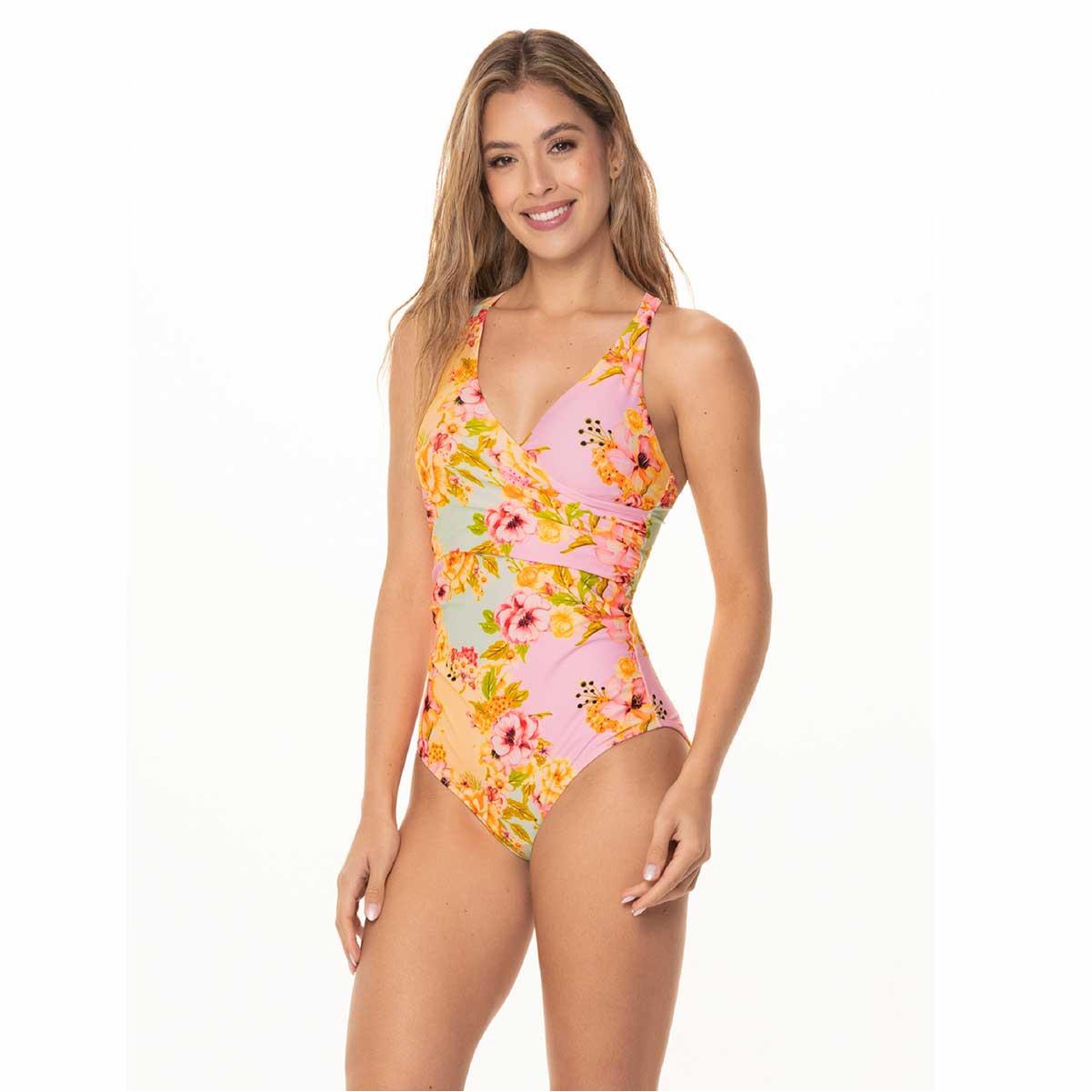 Calzoneta Garotas Luziana rosado flores naranja drapeada cantidad