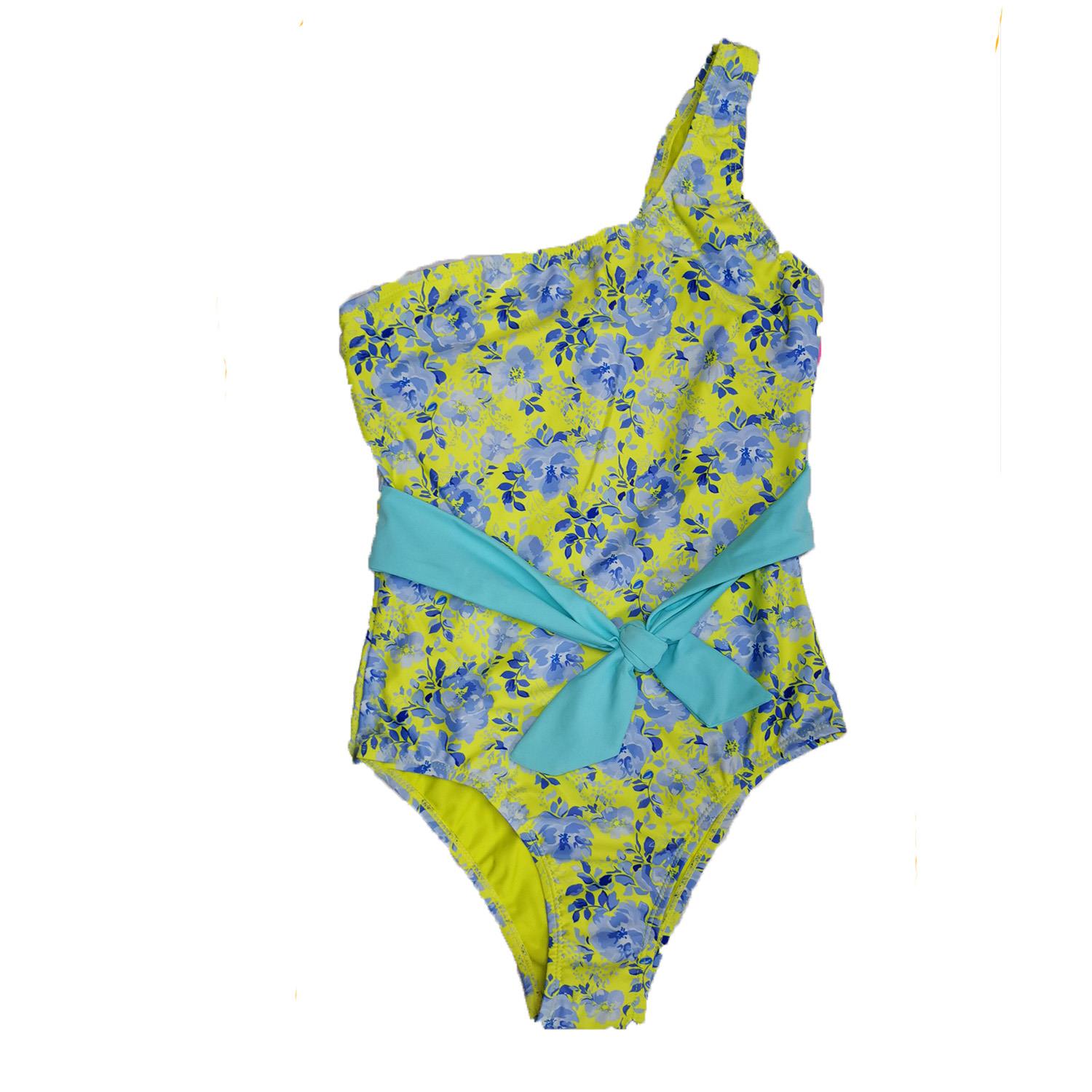 Calzoneta OP un hombro verde neon con flores niña 12-18yr