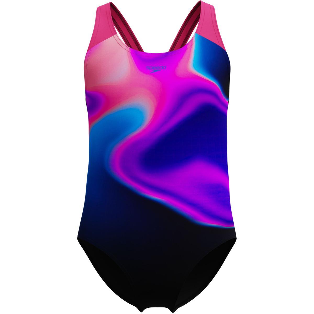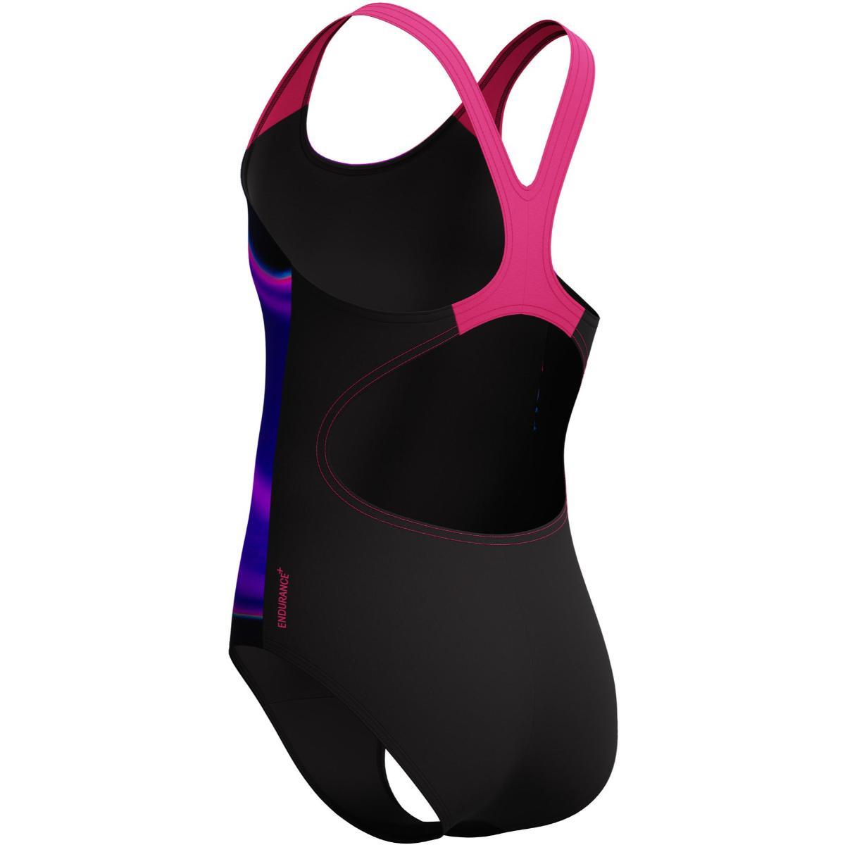 Calzoneta Speedo Endurance+ Placement Splashback niña negro con ondas moradas cantidad