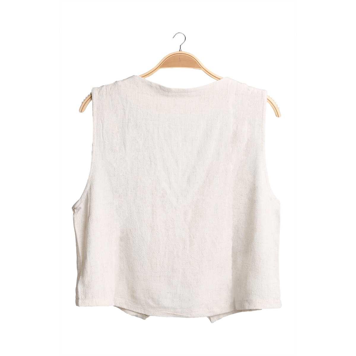 Chaleco Jasmine tipo lino biege con flores bordadas doradas cantidad
