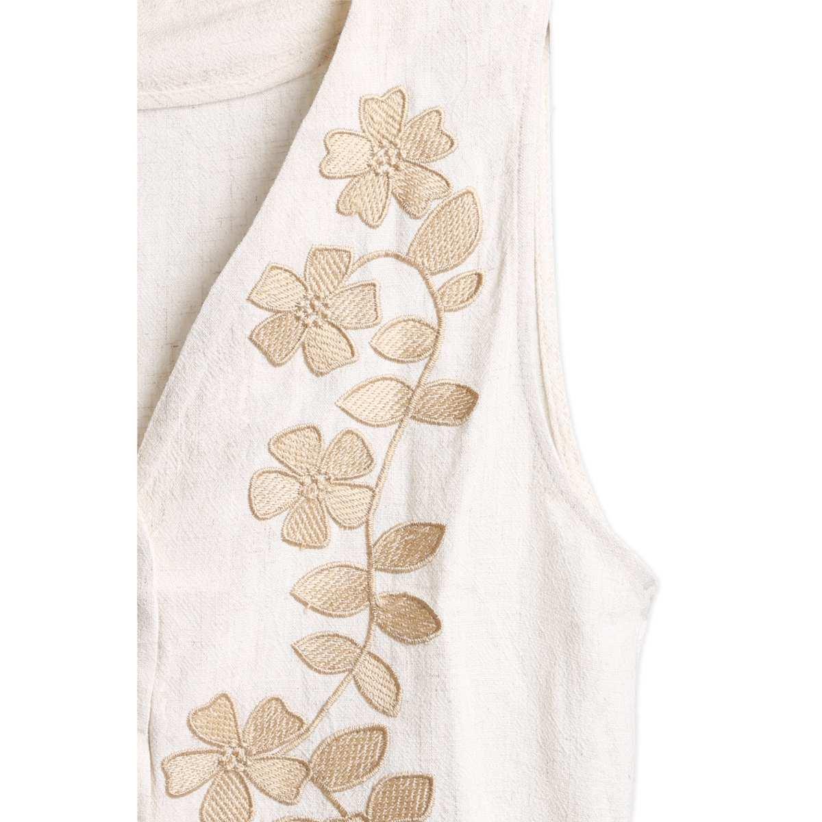 Chaleco Jasmine tipo lino biege con flores bordadas doradas