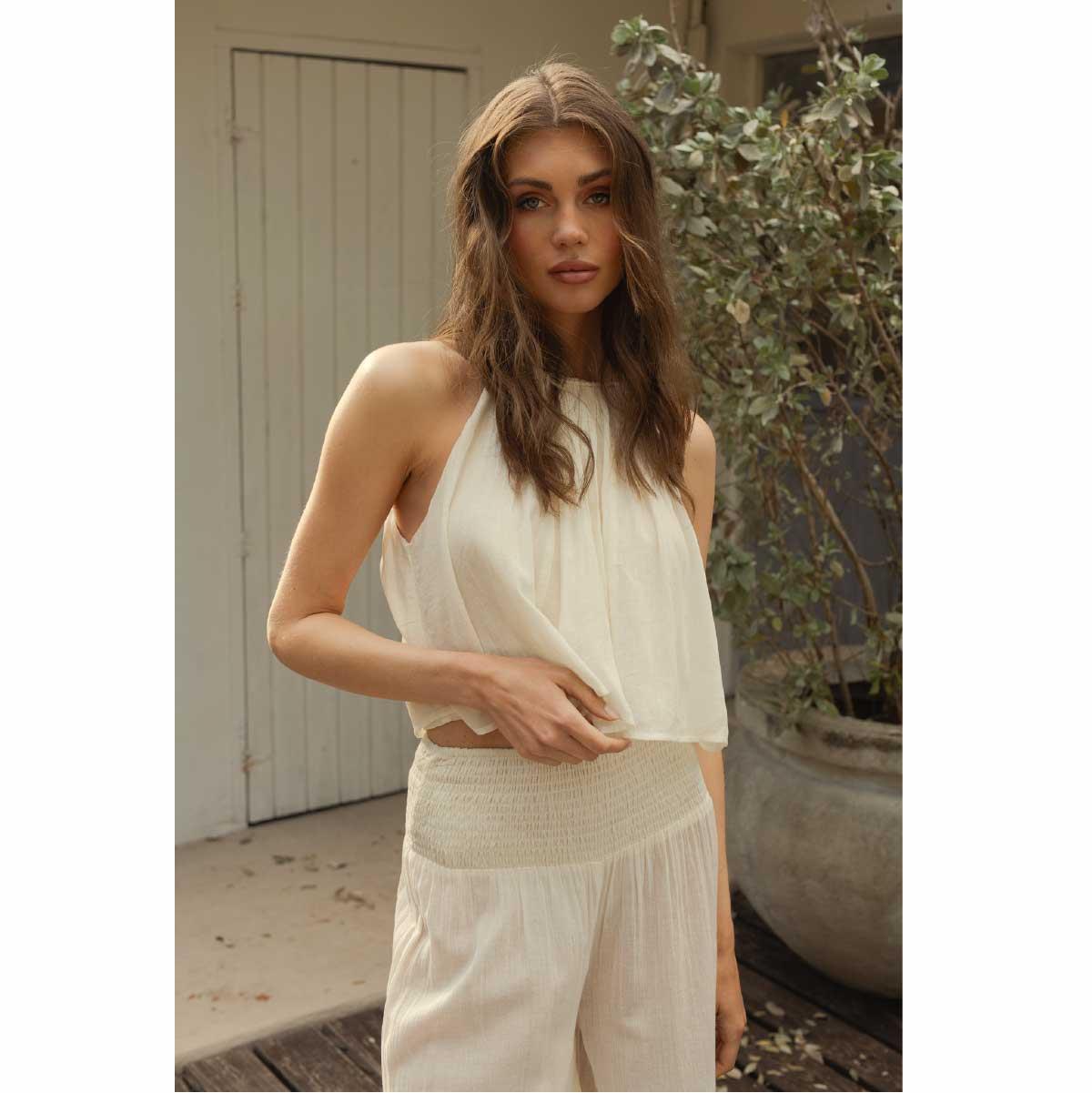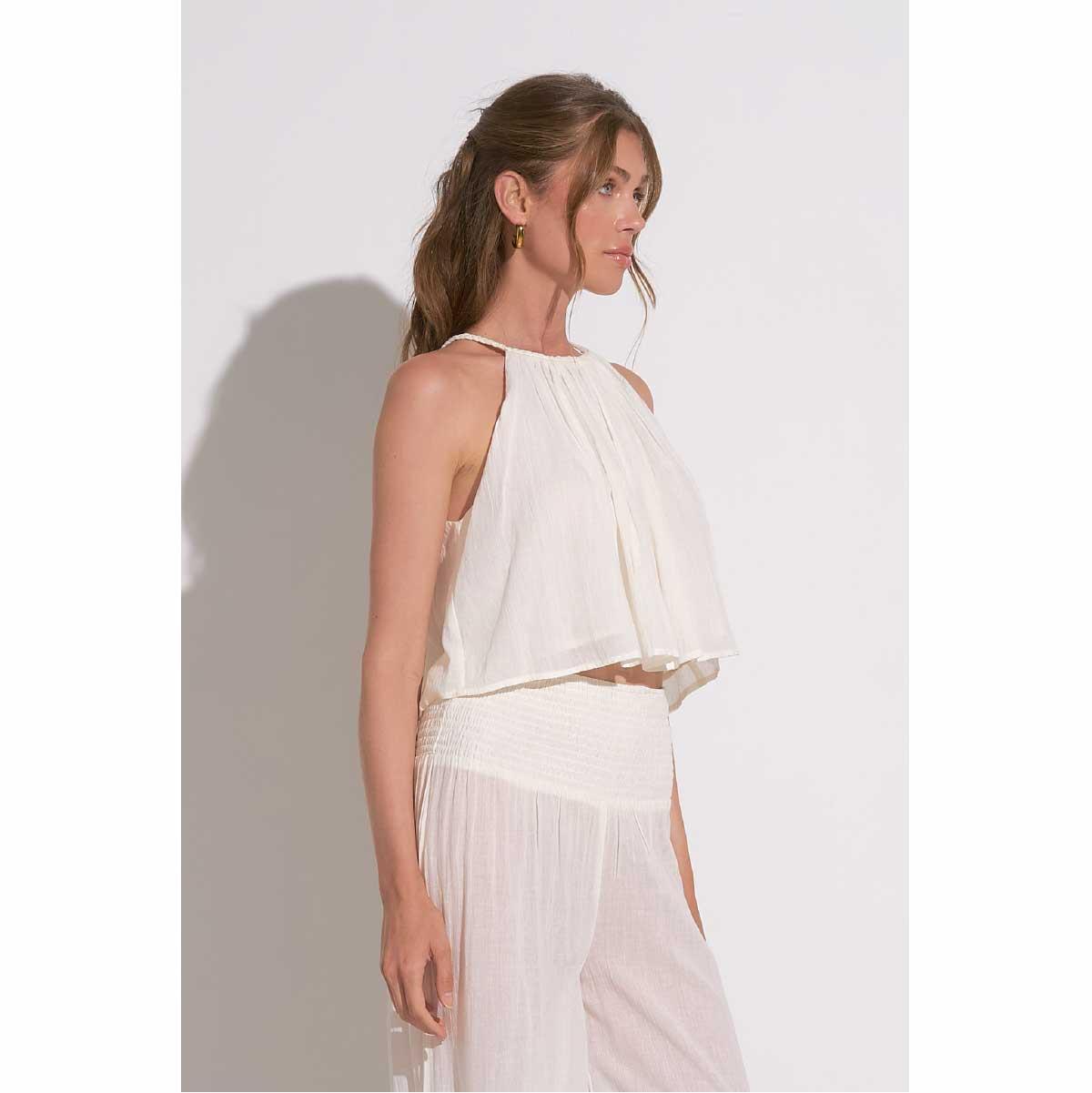 Crop top Elan cuello alto algodón blanco