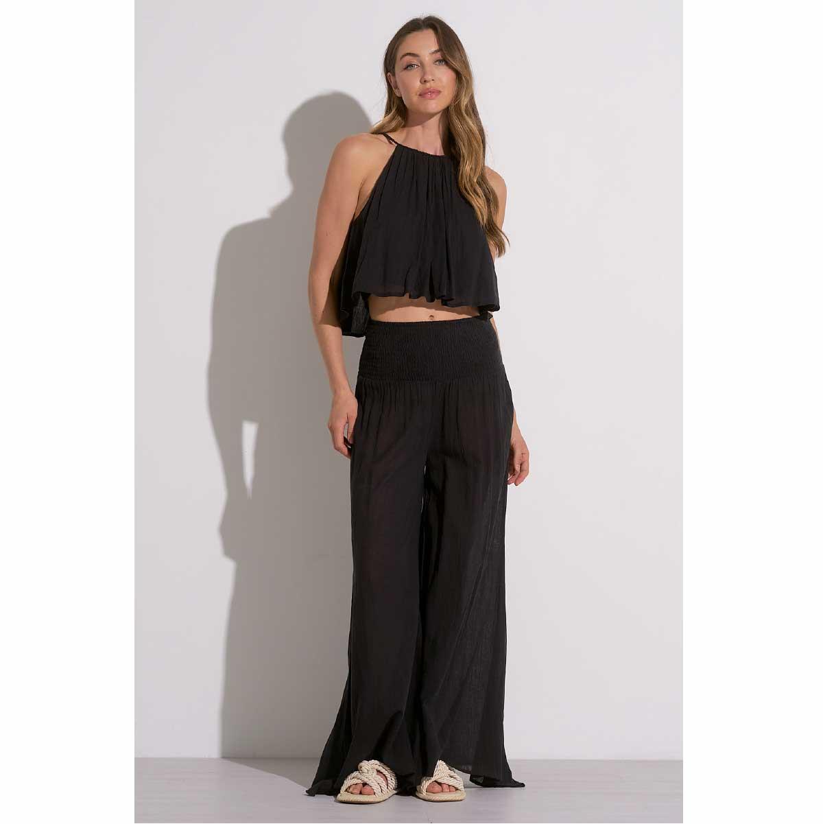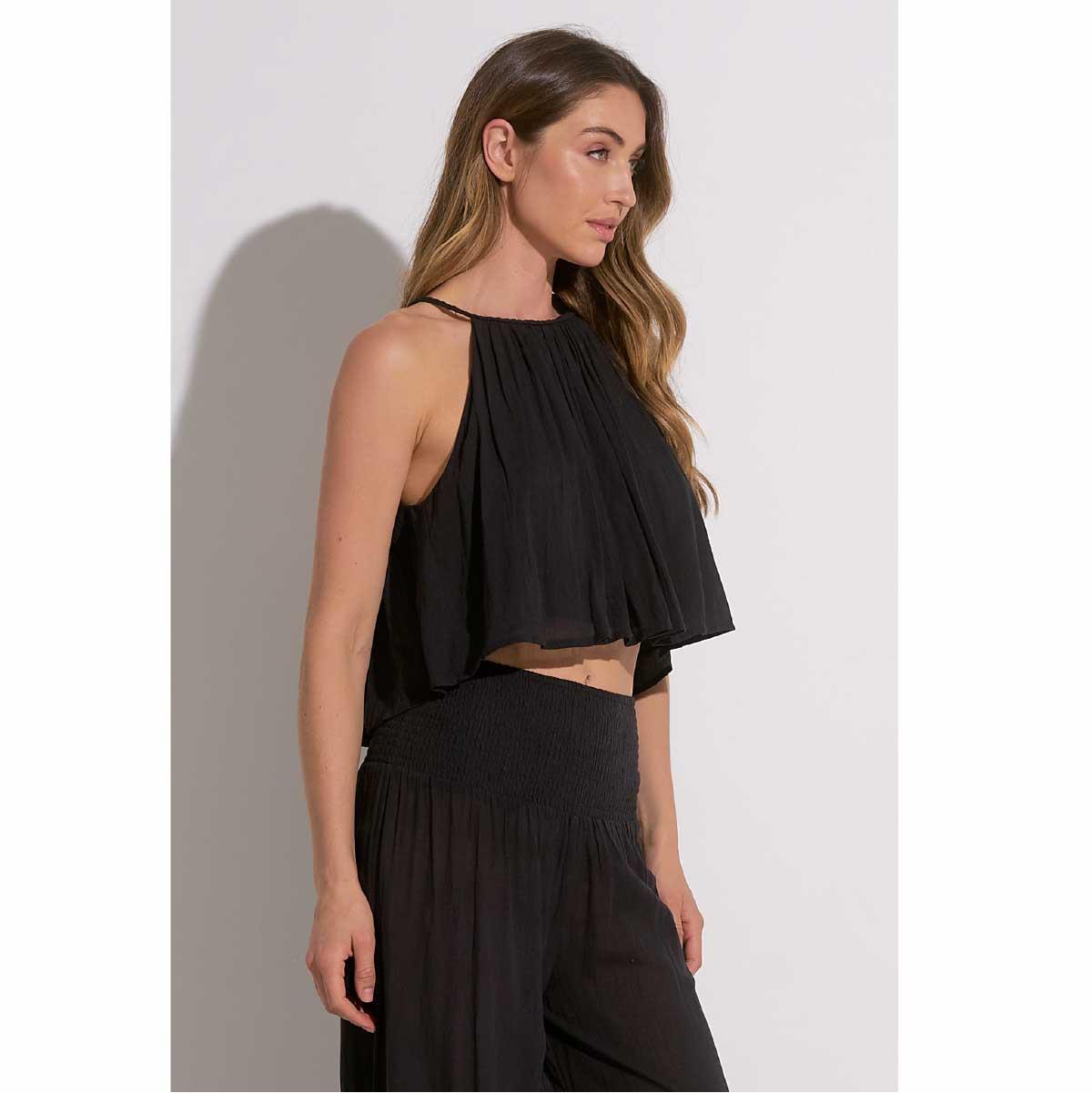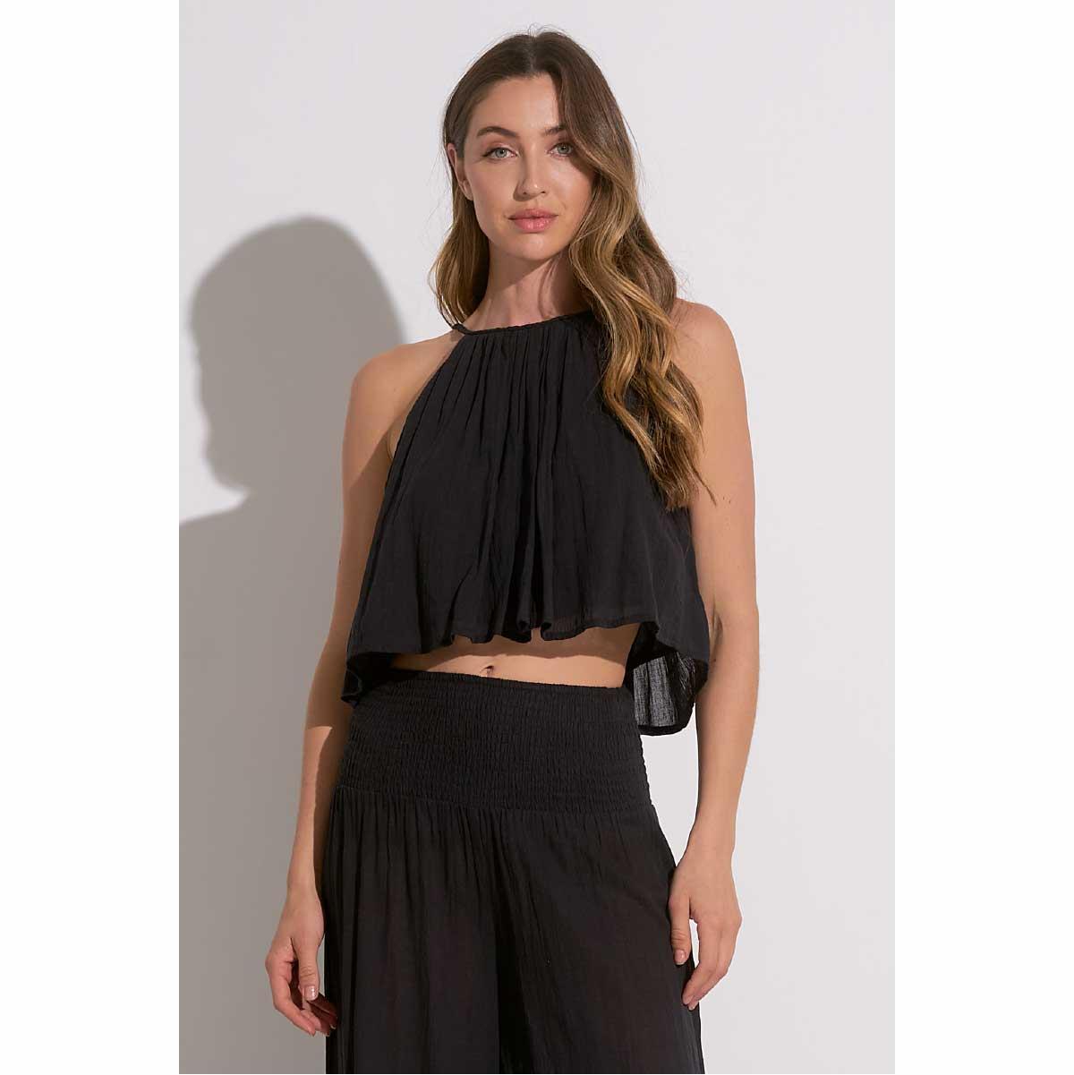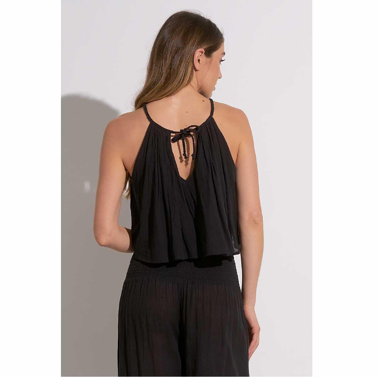 Crop top Elan cuello alto algodón negro cantidad