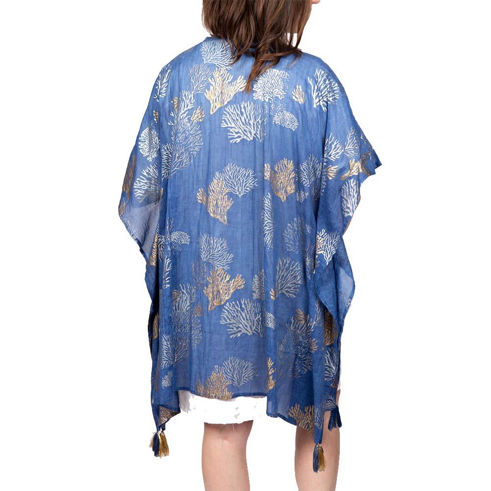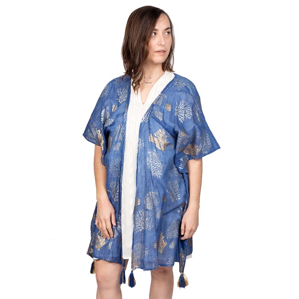 Kimono Dolma azul corales dorados y blancos