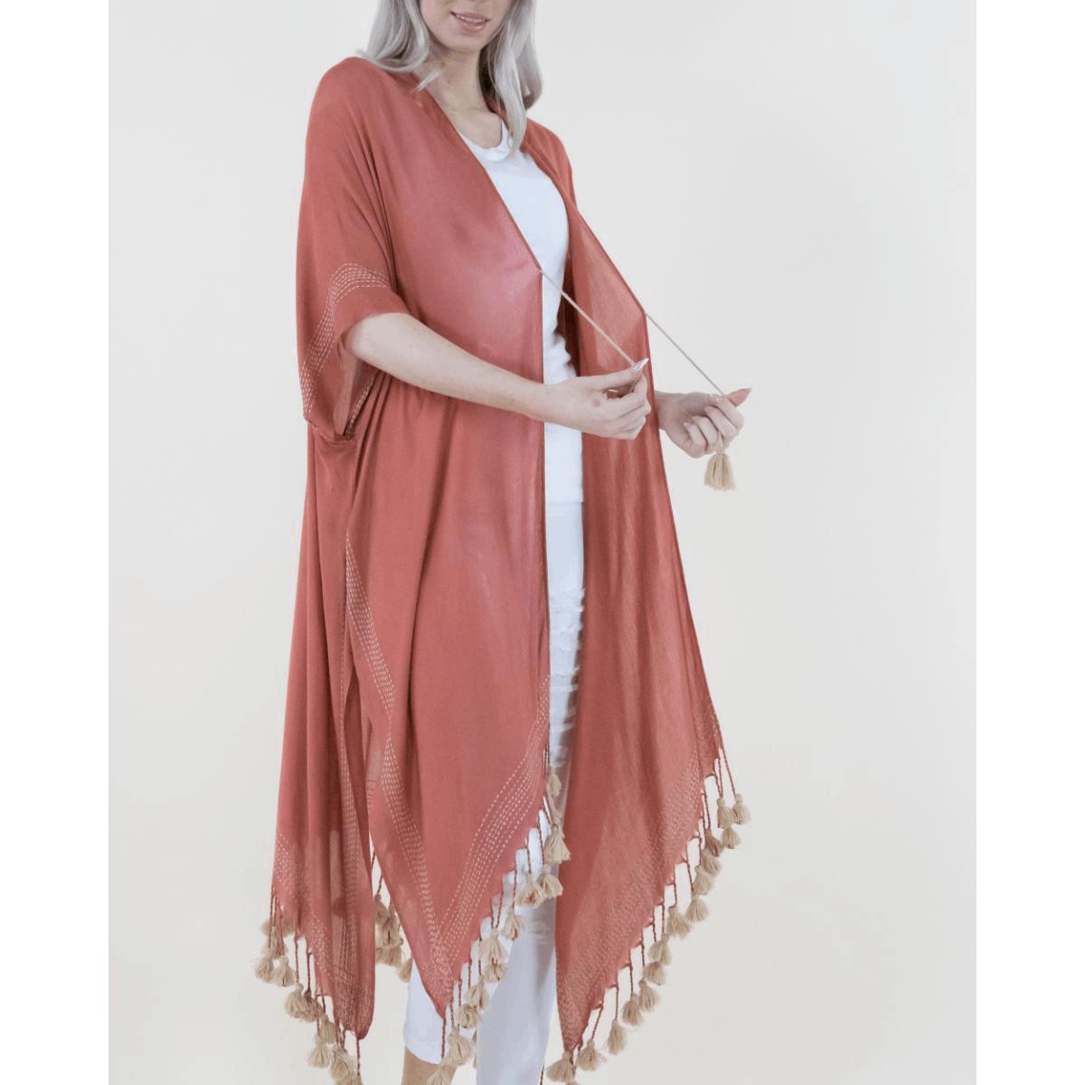 Kimono Original USA midi ladrillo con borlas beige cantidad