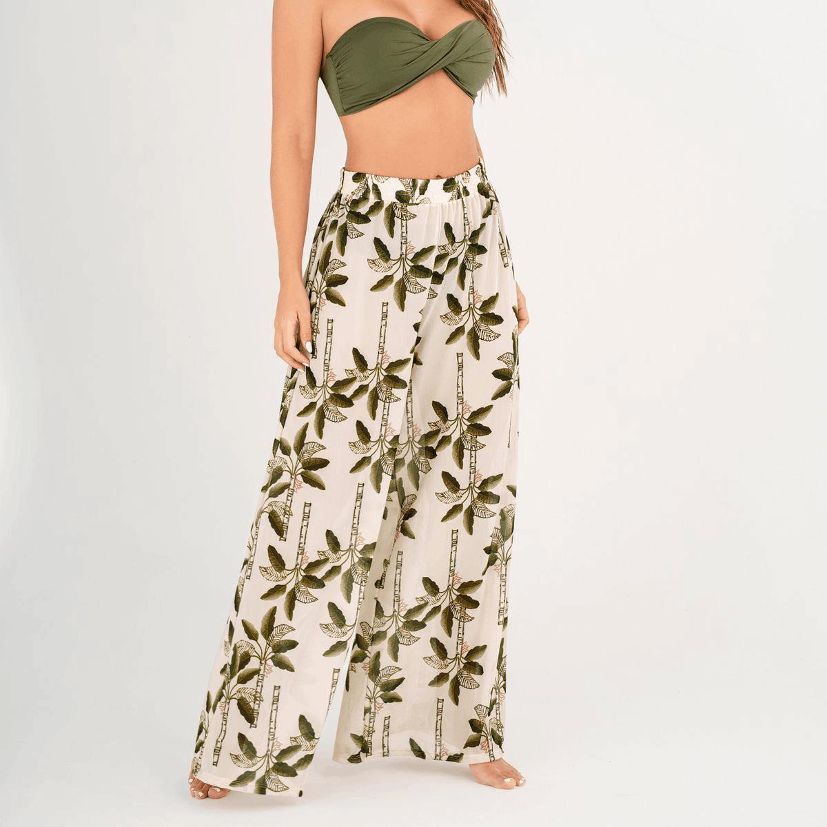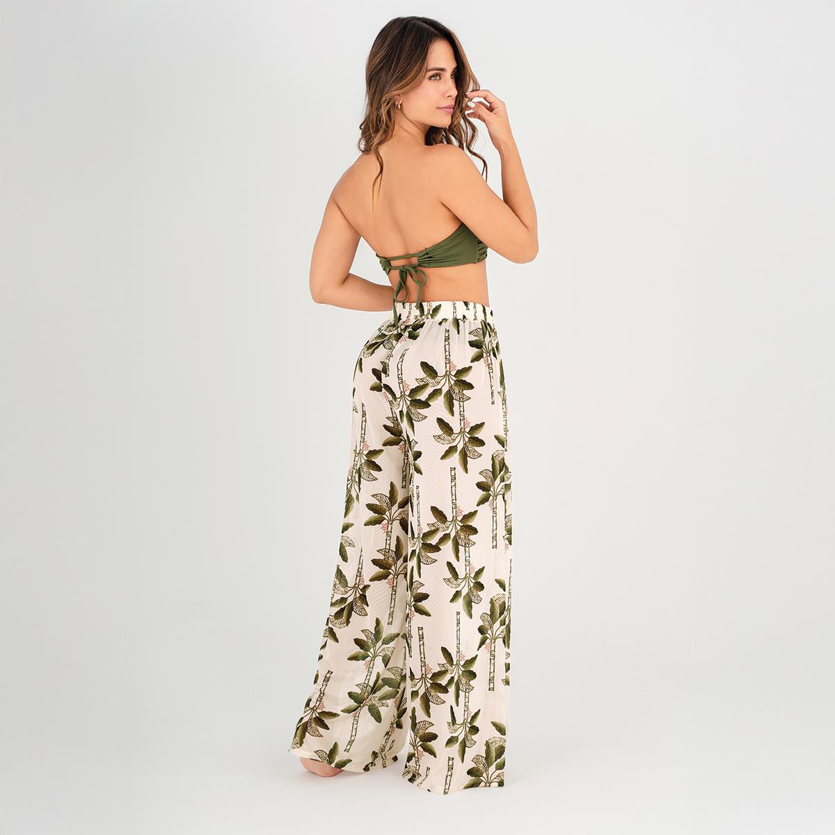 Pantalon Garotas Bribana crudo con palmeras cantidad