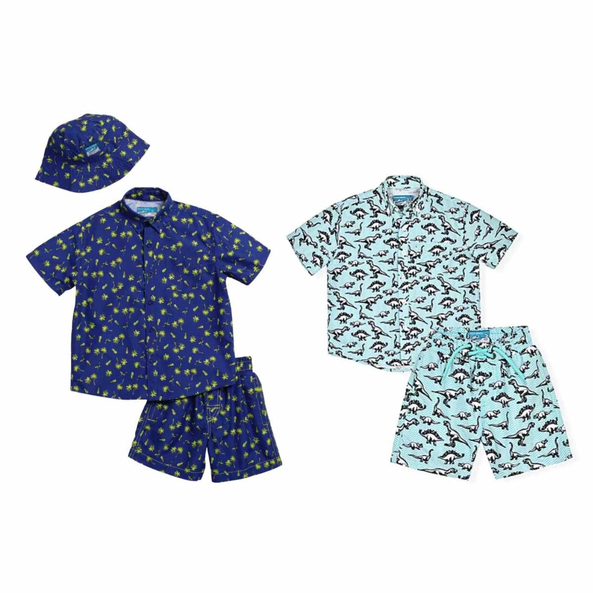 Set Beach Bros SS 3pzs azul palmera amarilla niño 2T-4T