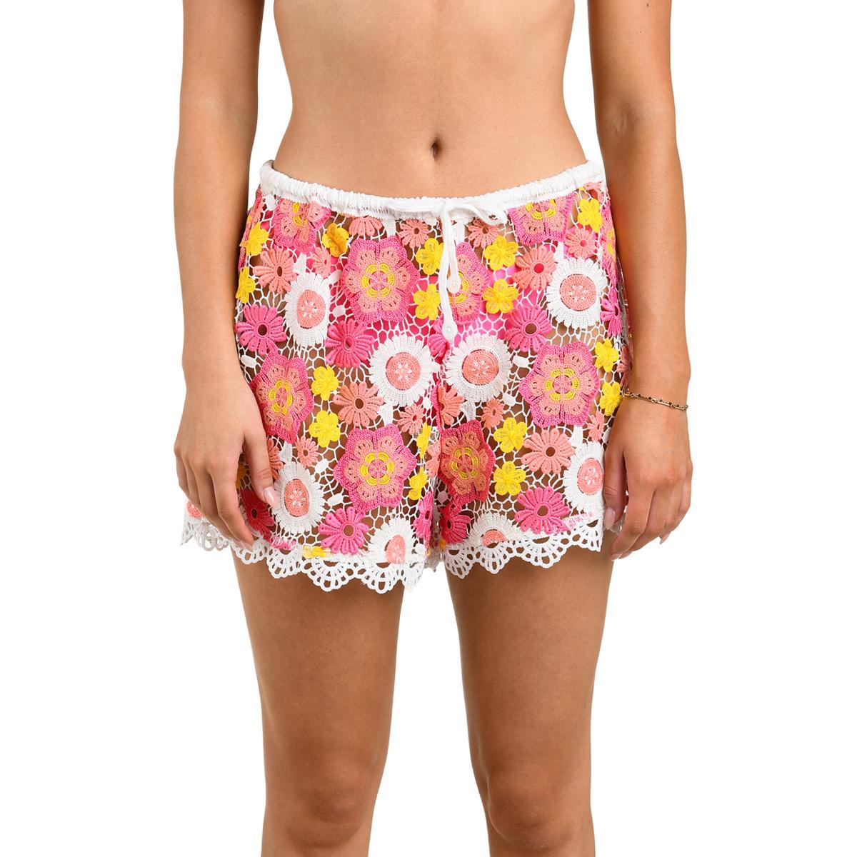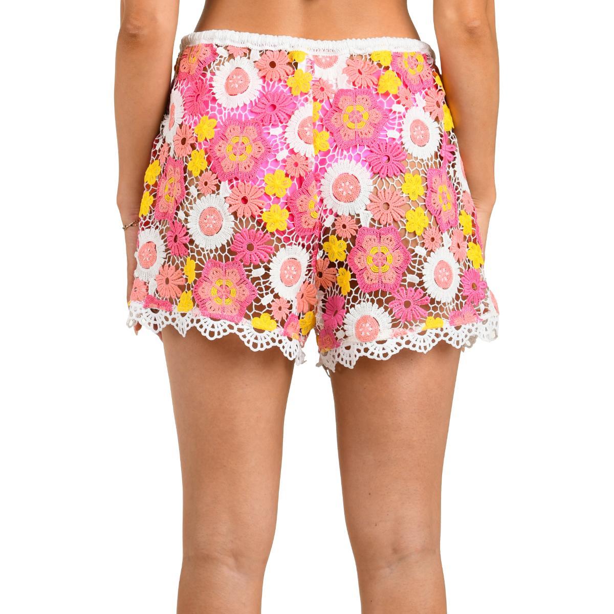 Short Citrus flores crochet rosadas mujer