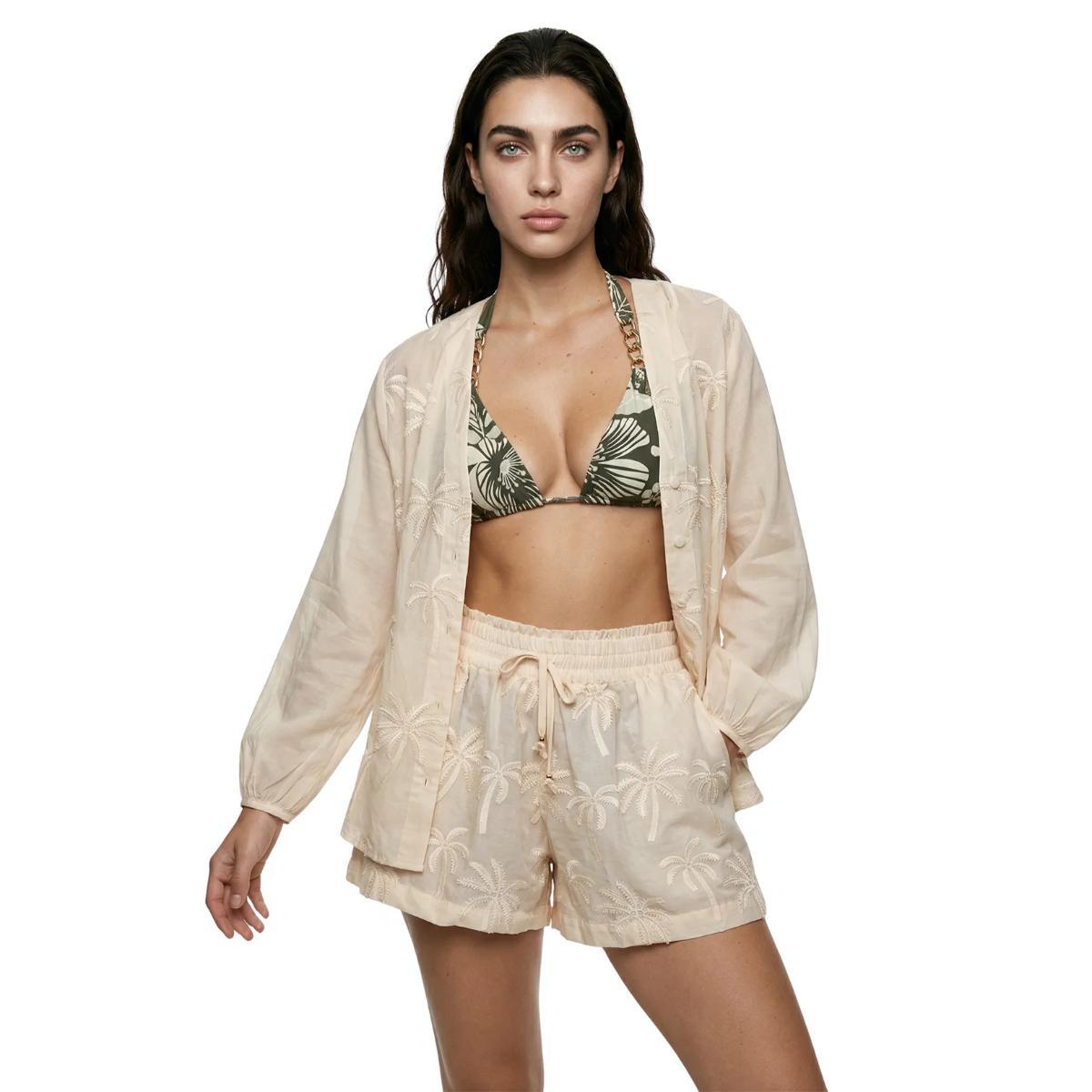 Short Garotas beige con palmera bordada