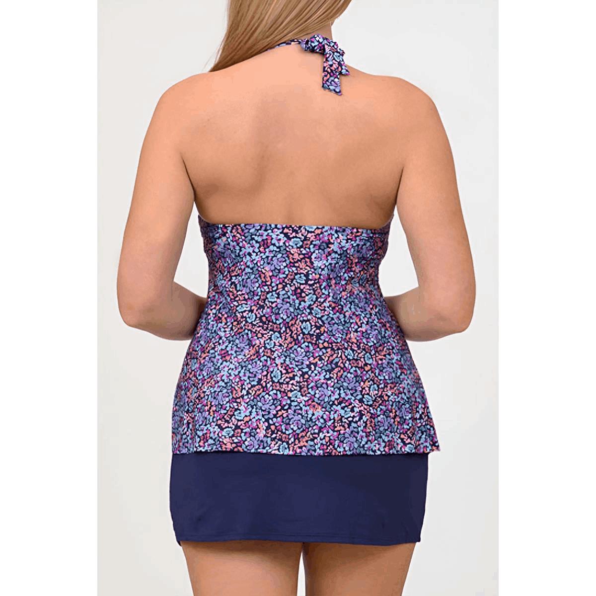 Tankini Leilani SS 2 pz azul flores micro con falda mujer cantidad
