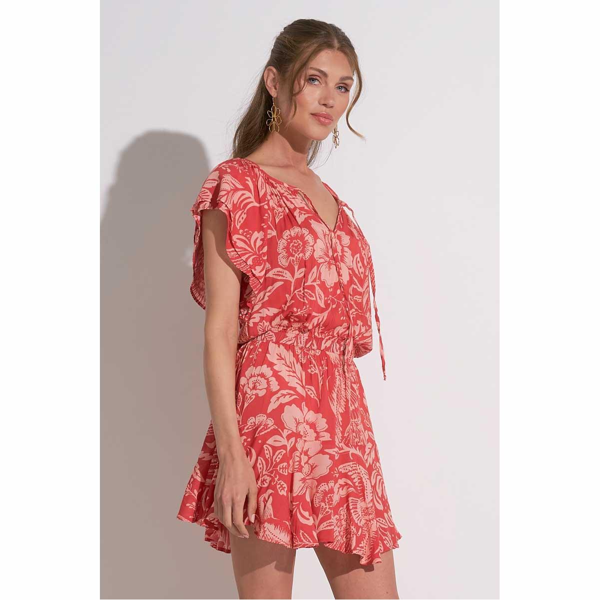 Vestido Elan corto flores rojo