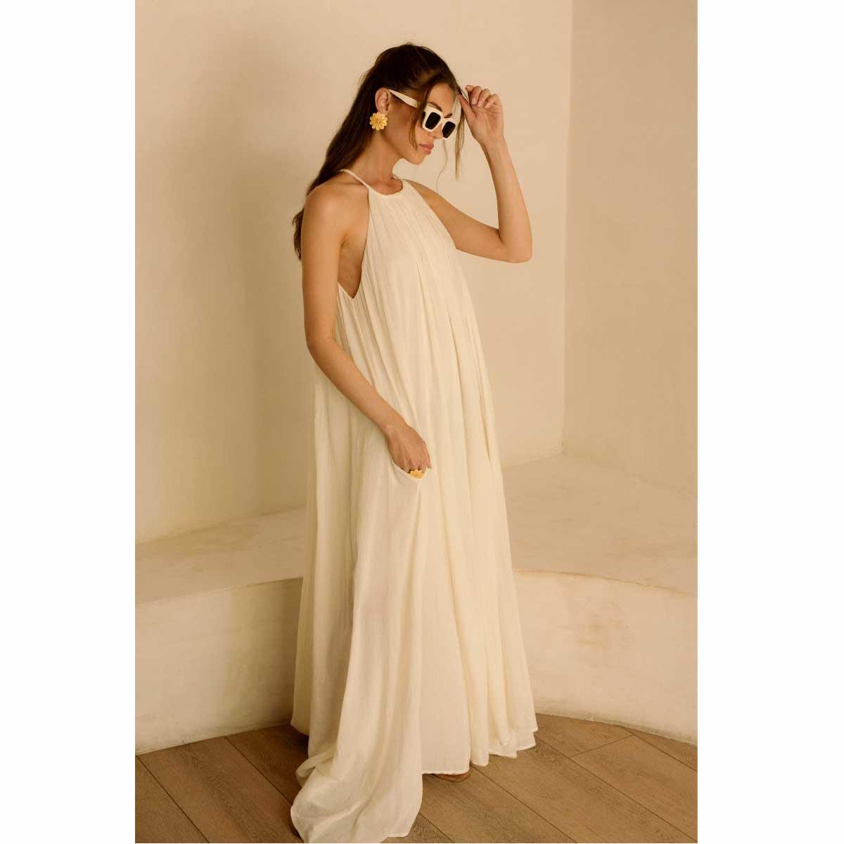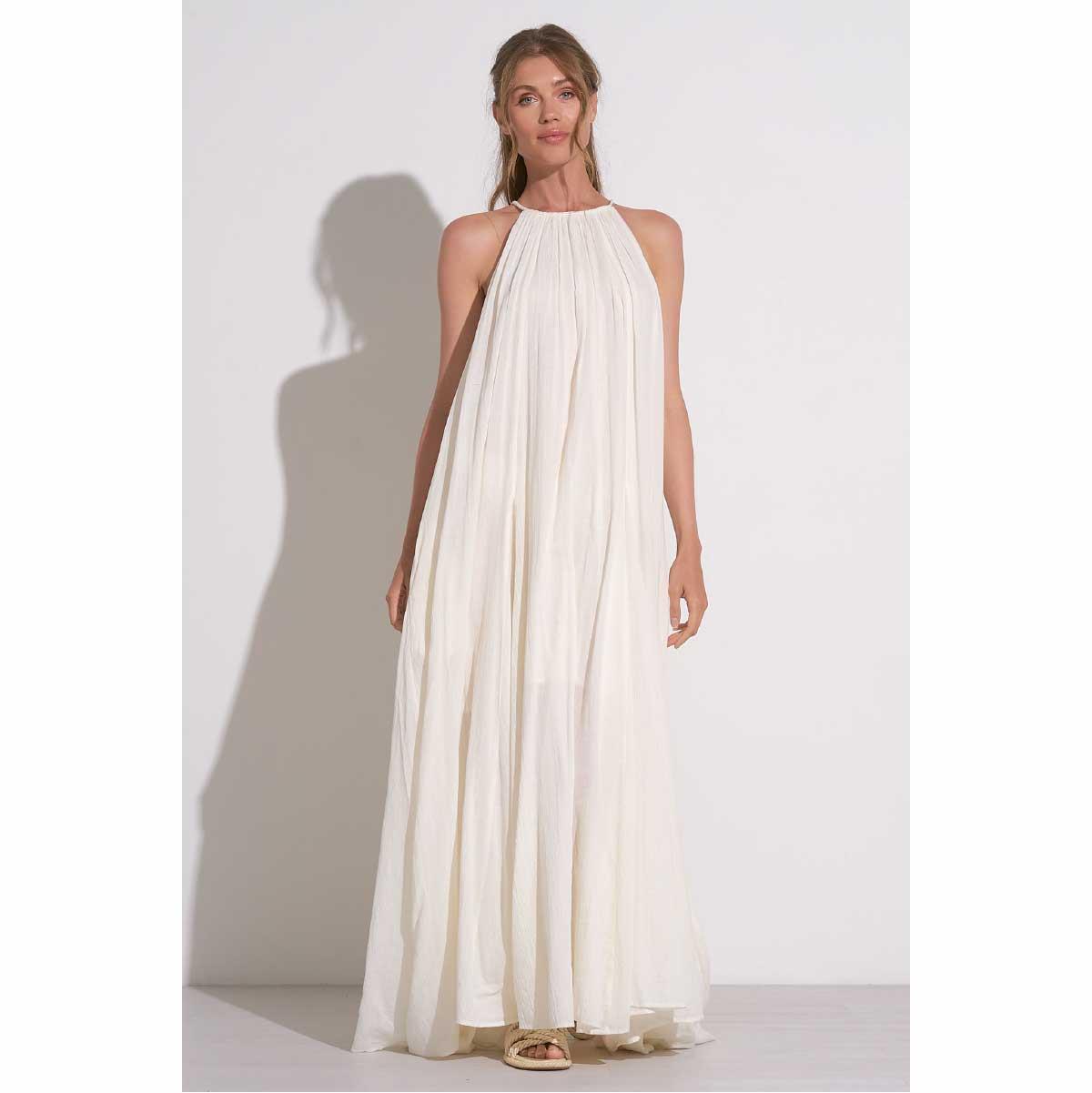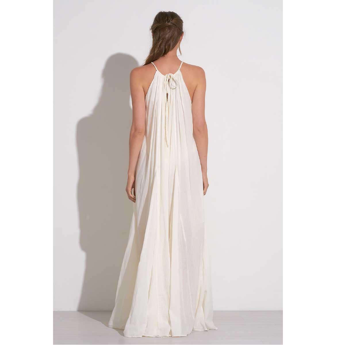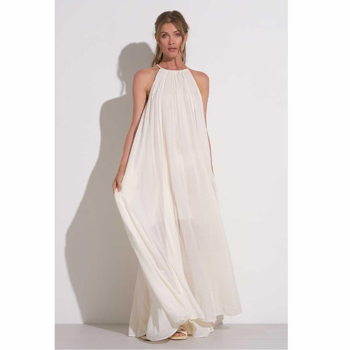 Vestido Elan largo algodón cuello alto blanco cantidad
