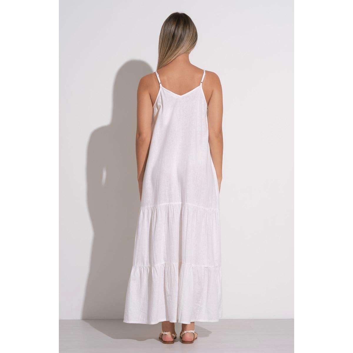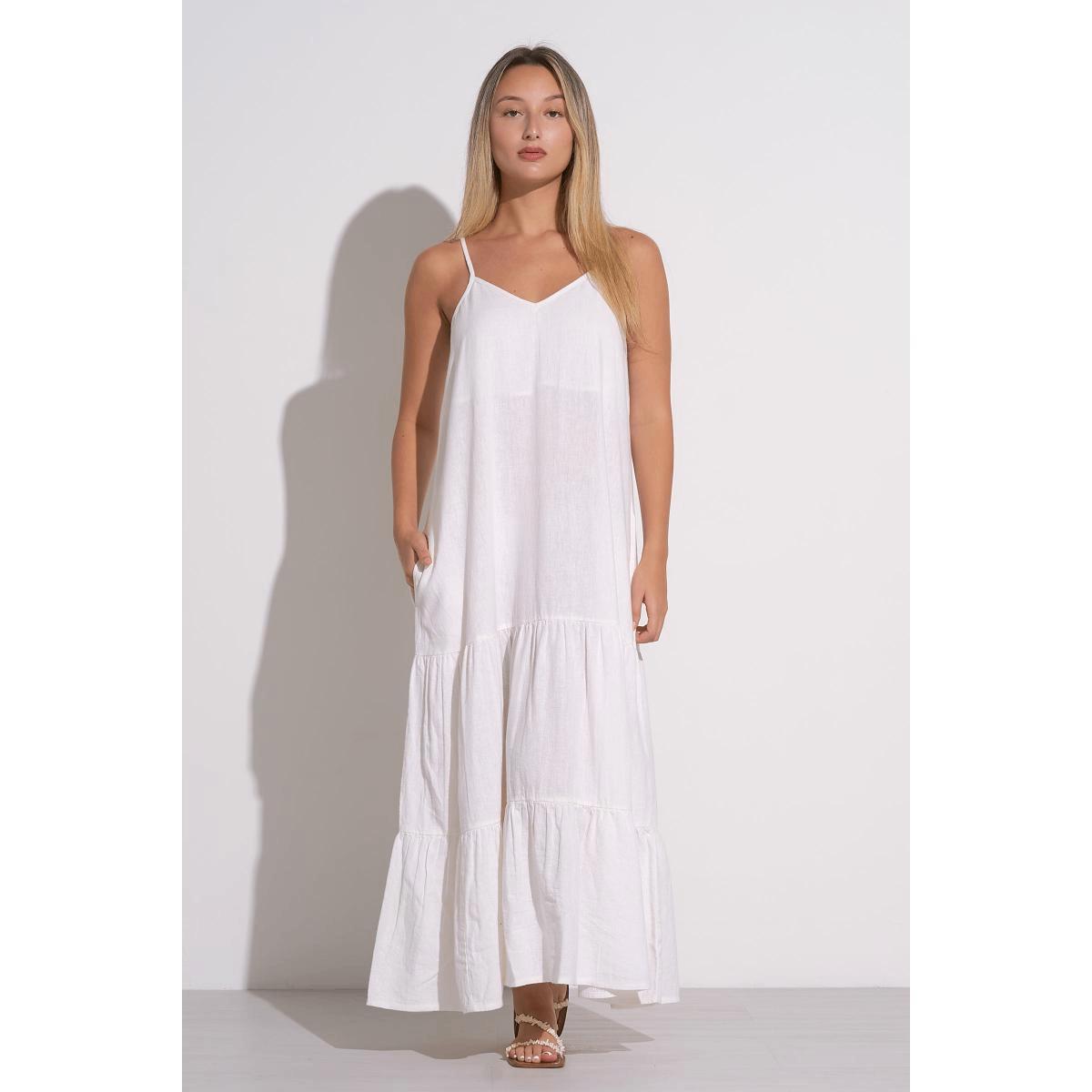 Vestido Elan largo con tirantes tipo lino blanco cantidad