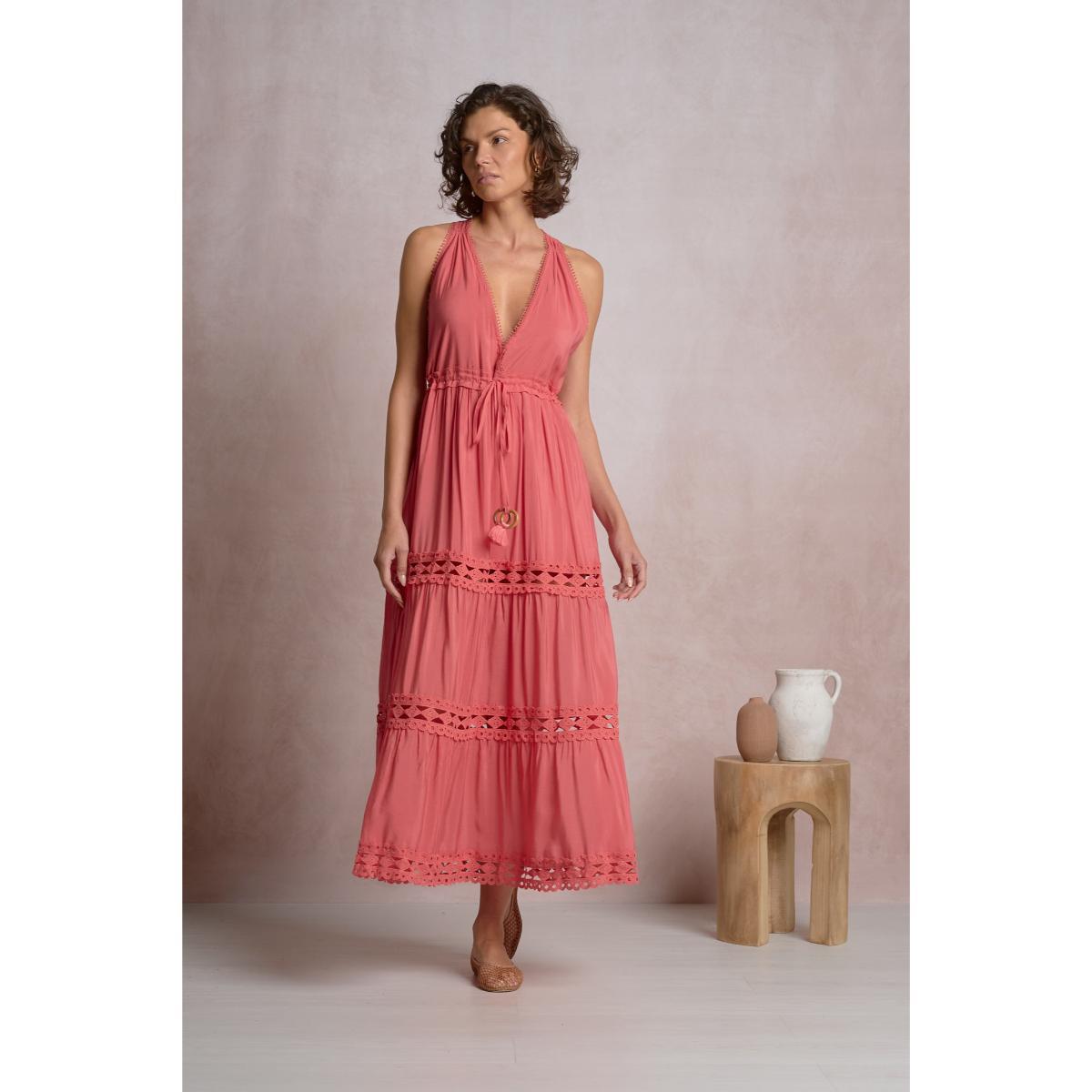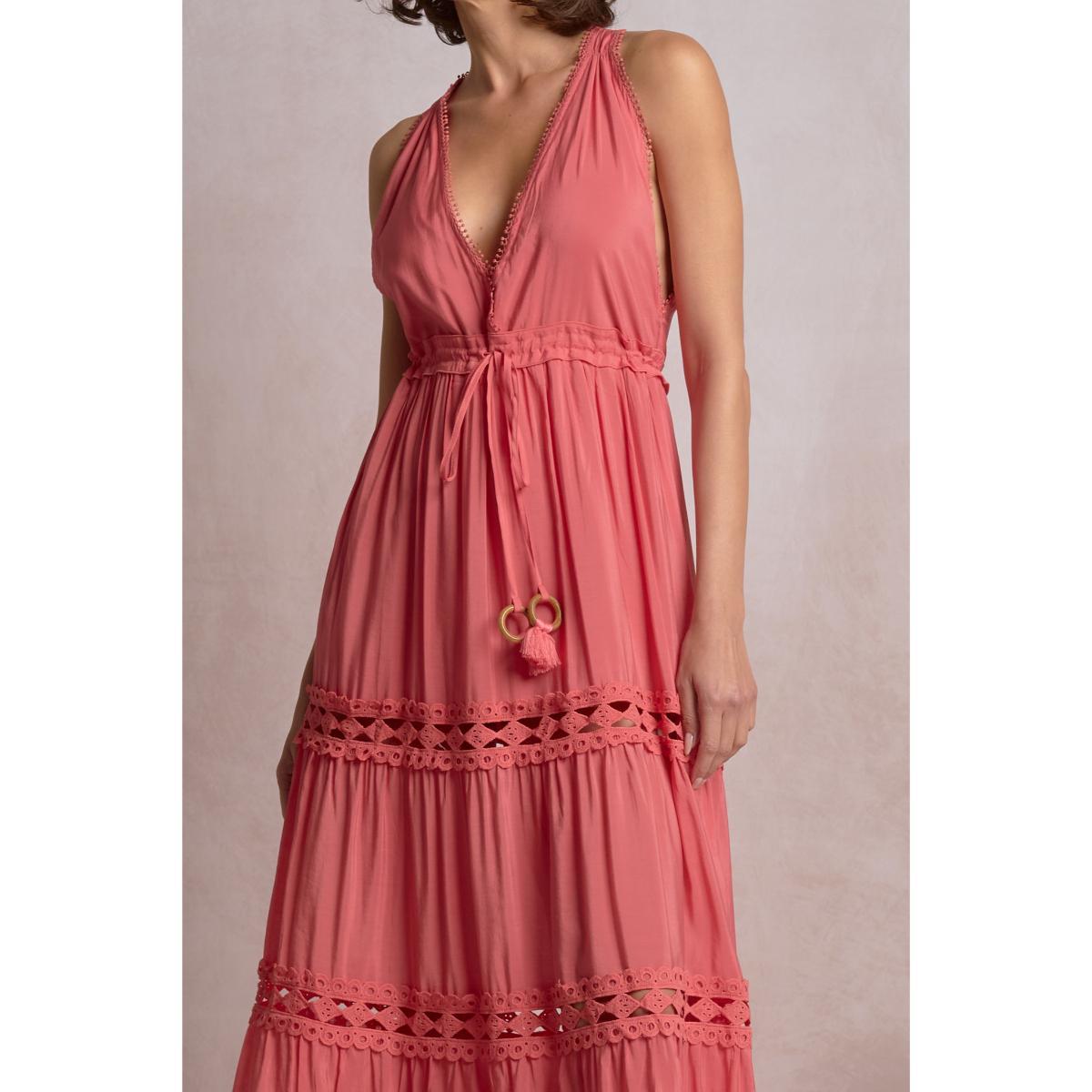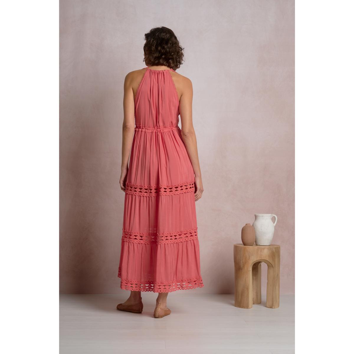 Vestido Elan largo halter encaje coral