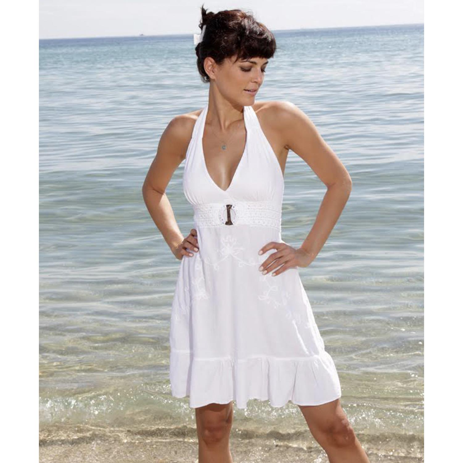 Vestido J.Valdi corto con capuchon Maldives blanco