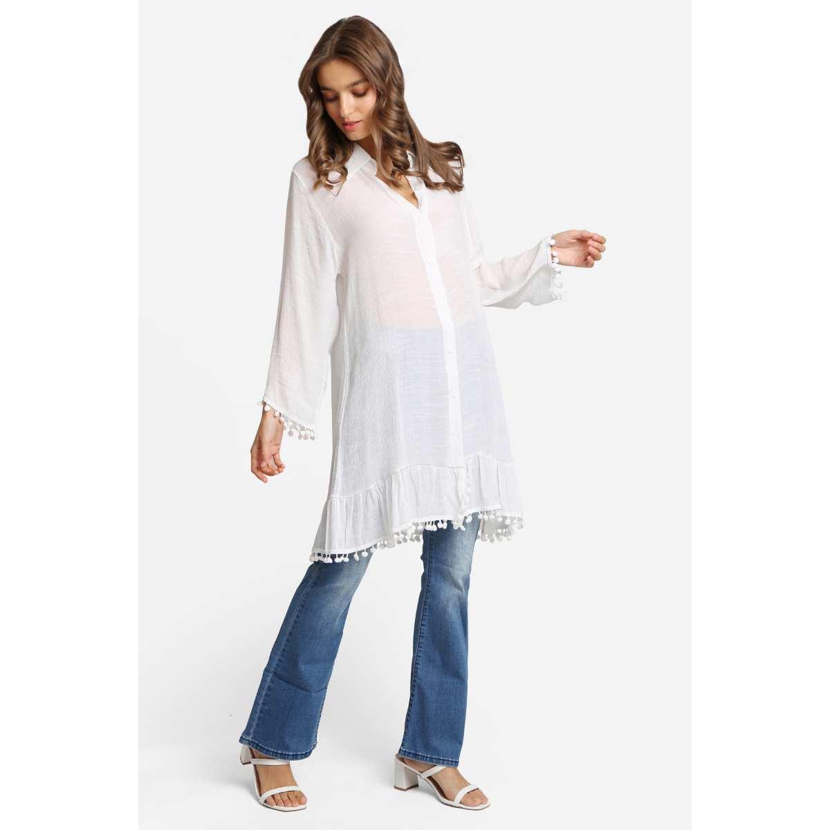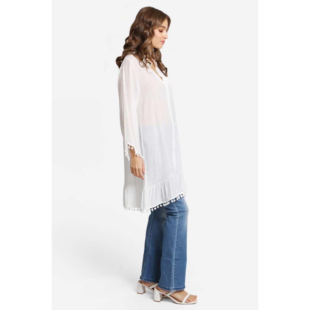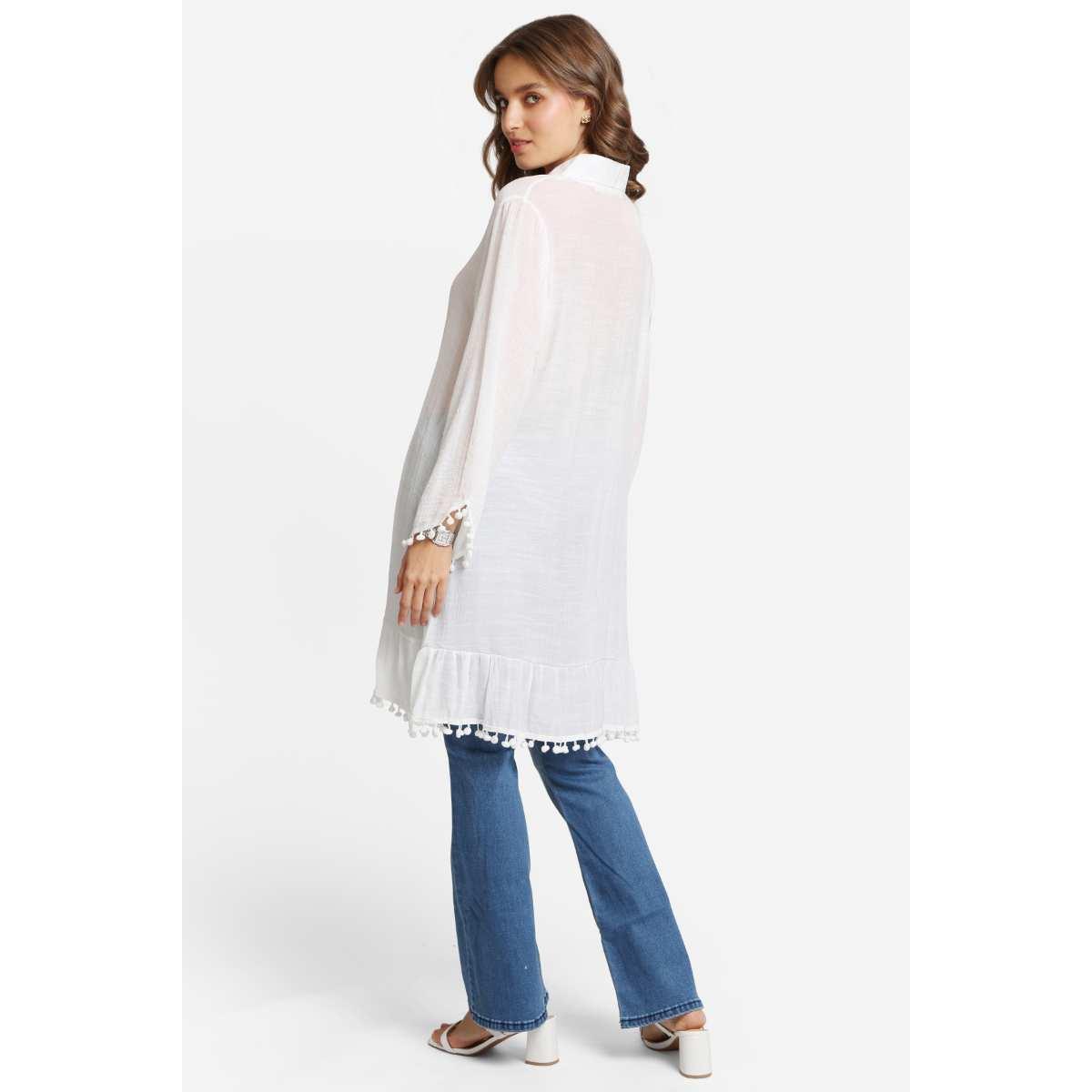 Vestido Jasmine blanco corto con ponpones