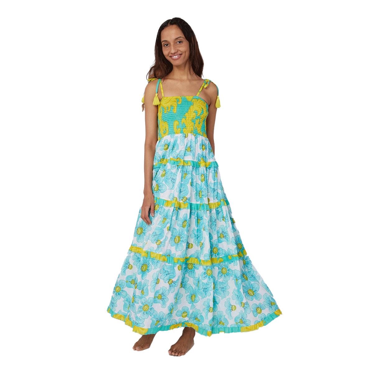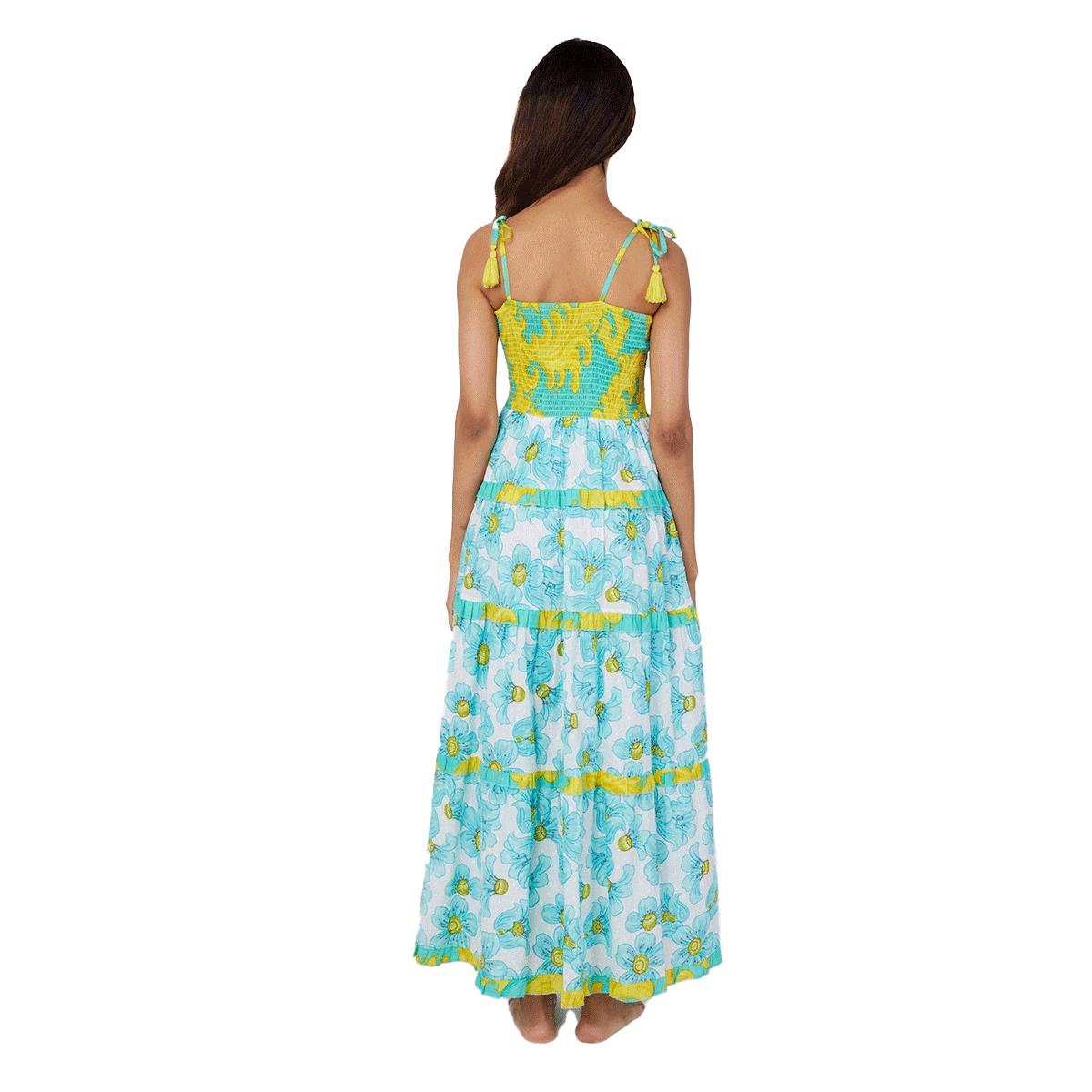 Vestido Moda Posa largo Dianora print flores celestes